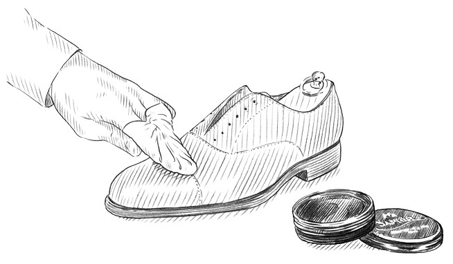 1. Tragen Sie das Lederfett sparsam mit einem Baumwolltuch auf. Verwenden Sie die Saphir Médaille d'Or Spreading Brush, um die Rahmennähte zu erreichen und die Pflege und Versiegelung zu maximieren.